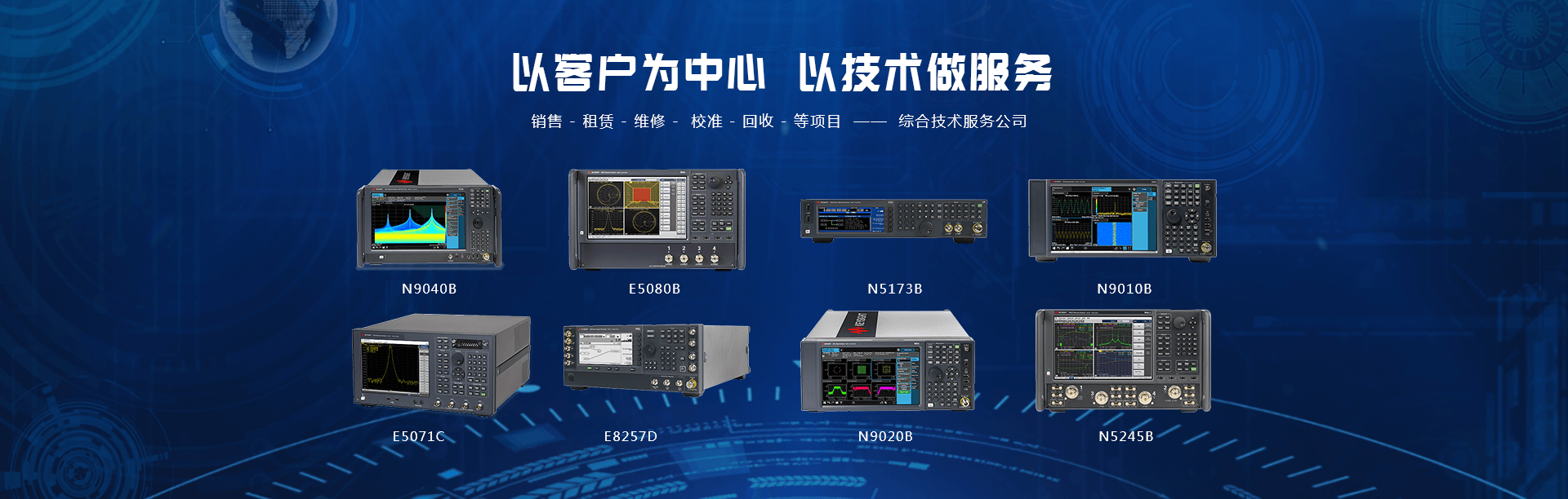 主要產品有:頻譜分析儀,網絡分析儀,綜合測試儀,藍牙wifi測試儀,噪聲系數測試儀,接收機,電話測試儀,高、低頻信號源,音、視頻信號分析儀,高精度萬用表, LCR/ 電橋、各種通信電源等。經營的儀器品牌主要有:Keysight/Agilent (惠普 / 安捷倫)、 R/S (羅德 & 施瓦茨)、 Anritsu (安立)、Litepoint、 FLUK( 福祿克 ) 、 TEK (泰克)等。